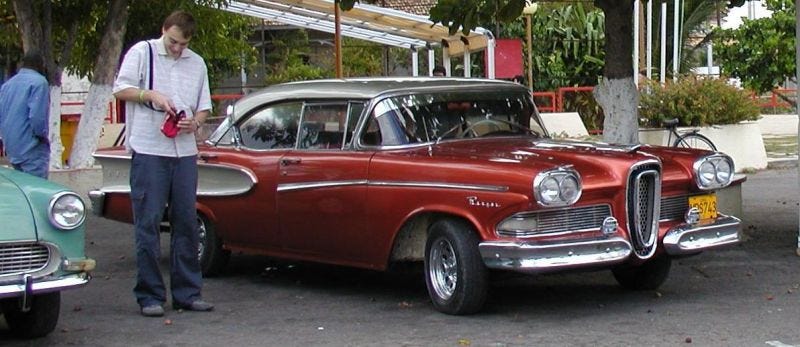 Prvni 2 dny nebylo zase tak pekne pocasi, a tak jsme vyrazili na vylet do Havany. Stare mesto je docela fajn, takova piratska dira. :) Vsude na ulicich posedavaly Kubanky s obrovskyma doutnikama a chtely se za uplatu fotit. Me ovsem zaujal deda, s doutnikem velkym jak noha od stolu. Ten mel pred sebou parek psu - fenku a psa, pricemz oba byli nejakym zvlastnim zpusobem spojeny zadkama a poskakovali kolem. Lidi na to koukali a rikali si siamsky psi. Tak jsem to ani nefotil, ale jake bylo nase prekvapeni, kdyz jsme tim mistem sli odpoledne znovu a ty psi behali pekne rozpojeny. Proste dedek sibal si udelal zivnost z posiamstovani psu. Jinak vsude jezdily stare Chevrolety, ziguliky a moskvice. Ty chevy byly paradne nablejskany a zachovaly, jenze je Kubanci nesmej prodat cizincovi, natoz vyvest ze zeme. Osobne mi to takhle vyhovuje, nechci aby takhle krasny auta zmizely v bezednych skladech solventnich sberatelu.